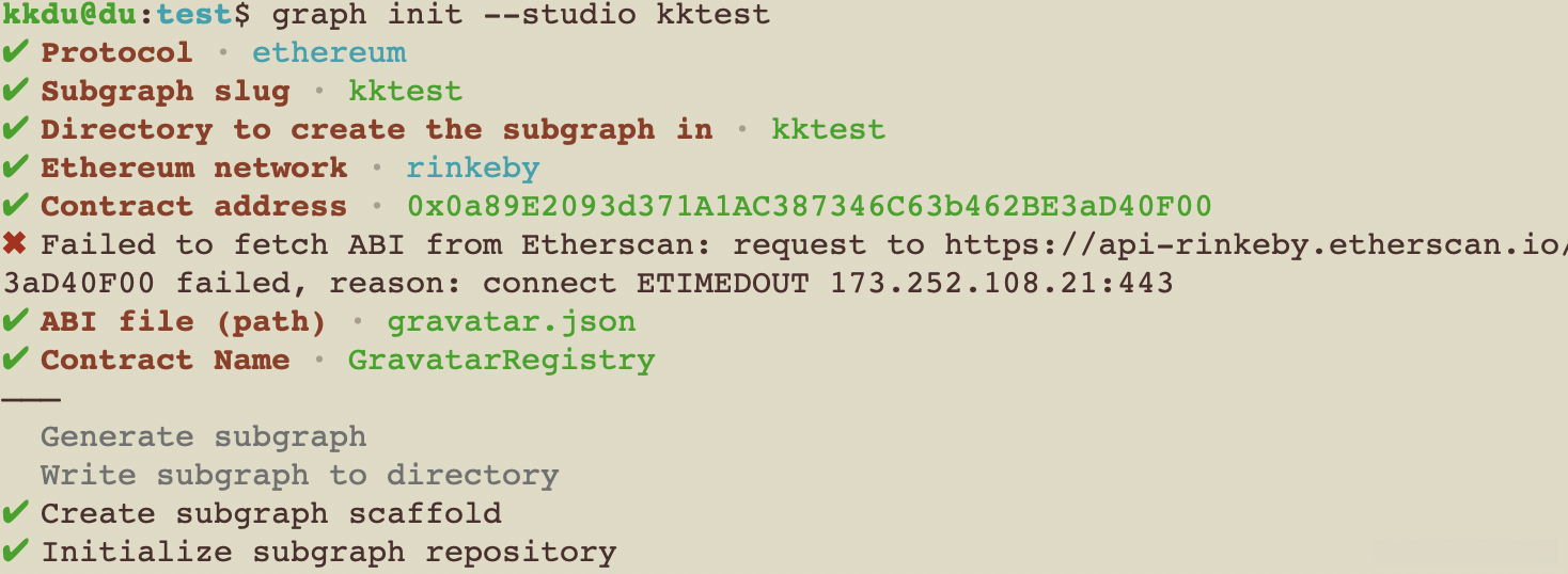 在kktest目录下会生成 subgraph.yaml 文件和 schema.graphq 文件