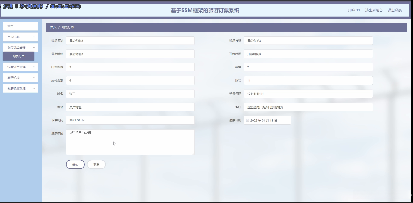 系统内容:用户,景点信息,景点分类,购票订单,退票订单