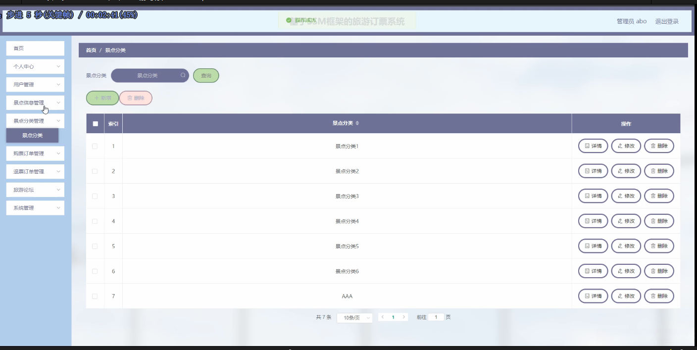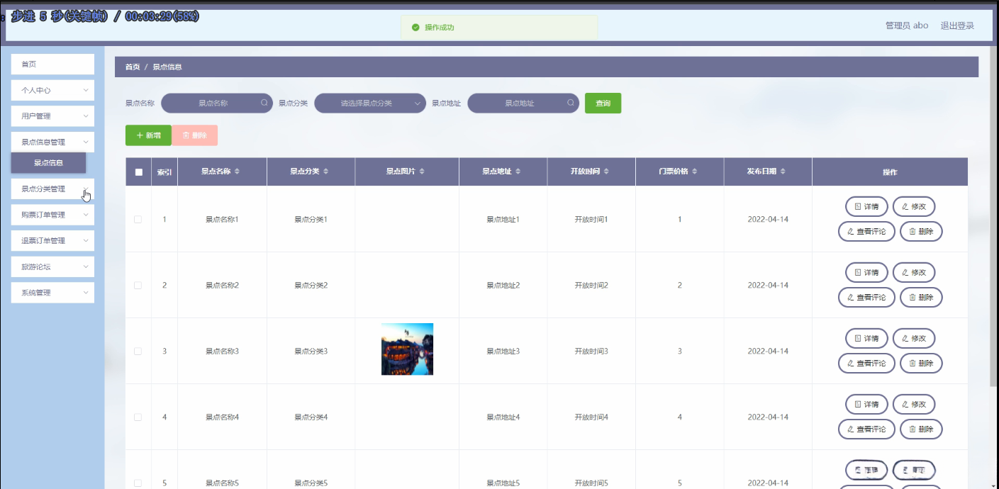本项目旨在采用现代化信息技术来构建一个遵循三层架构的SSM框架型旅游订票系统。该系统将支持在线预订服务、即时支付功能以及信息查询模块,并致力于提升游客的整体体验感与经营效益。评估此项目的实际价值具有一定意义,在实践层面而言不仅能够显著提高游客的预订效率与满意度;同时还能让旅行社实时追踪产品的销售动态并实现资源的有效配置与优化管理。