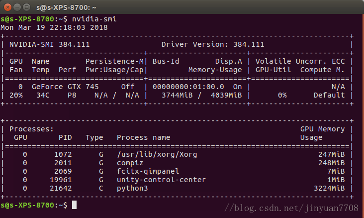 在终端输入 nvidia-smi