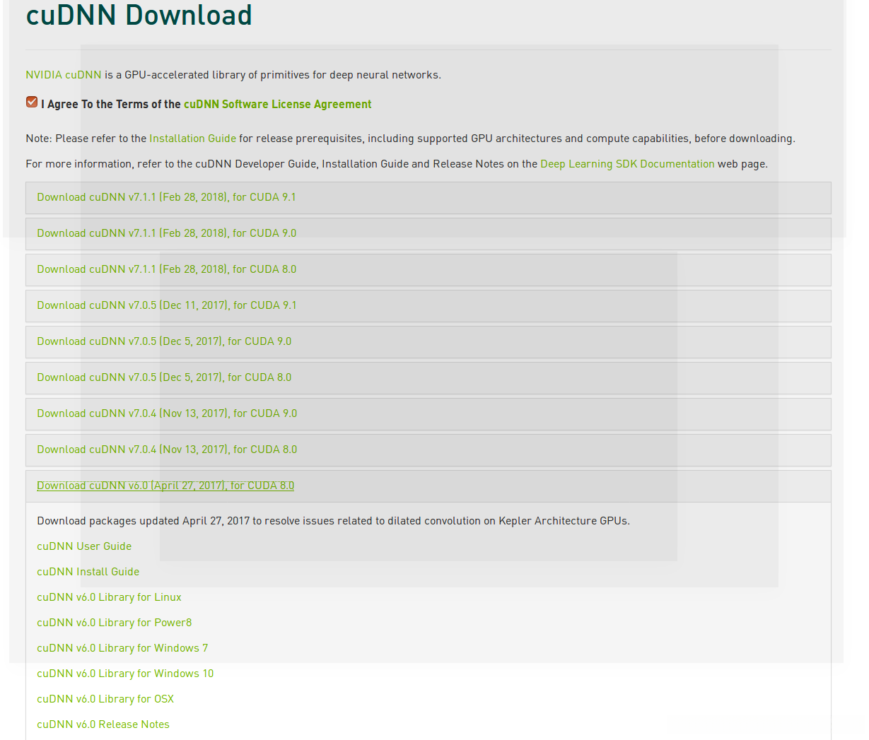 4. Cudnn6.0版本