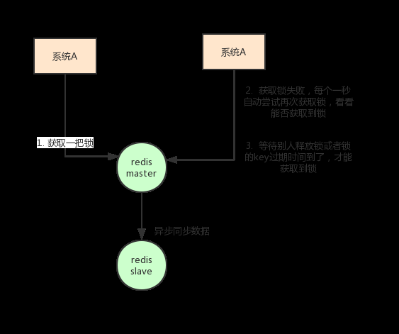 采用master-slave模式,加锁的时候只对一个节点加锁,即便通过sentinel做了高可用,但是如果master节点故障了,发生主从切换,此时就会有可能出现锁丢失的问题。