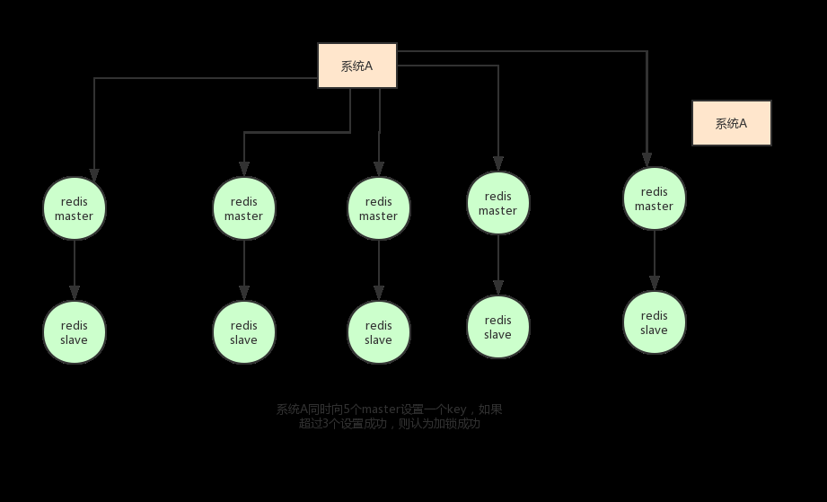 轮流尝试在每个master节点上创建锁,过期时间设置较短,一般就几十毫秒
