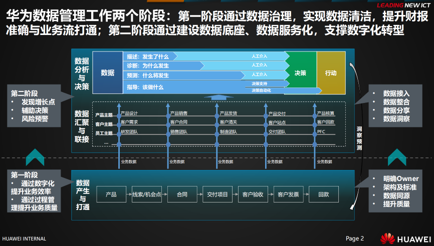 企业未来发展的核心驱动力在于实现数字化转型。通过系统性地构建完善的数字化治理体系——其中包含差异化的数据分析方案、面向业务的知识架构设计以及智能化的数据底座平台建设等——企业能够显著提升数据分析效能与商业决策水平。本文拟依据华为在数据治理领域的相关研究成果, 进行深入分析与探讨。