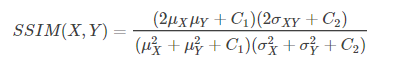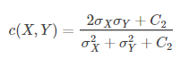C1、C2、C3为常数,为了避免分母为0的情况,通常取C1=(K1∗L)2, C2=(K2∗L)2, C3=C22, 一般地K1=0.01, K2=0.03, L=255 则