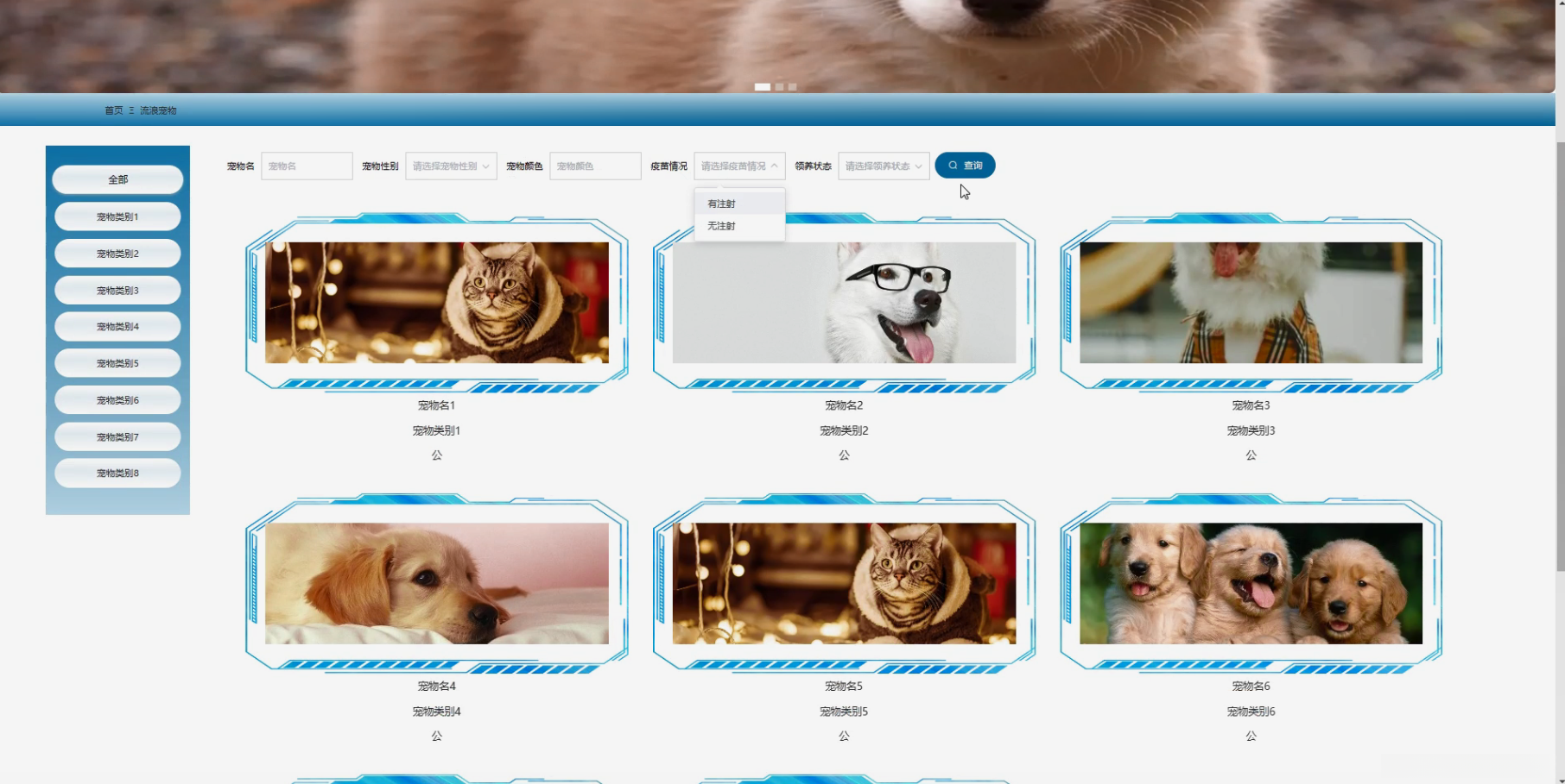 宠物类别管理:构建宠物分类数据库,涵盖猫科动物、犬类以及其他常见家养动物的信息库。