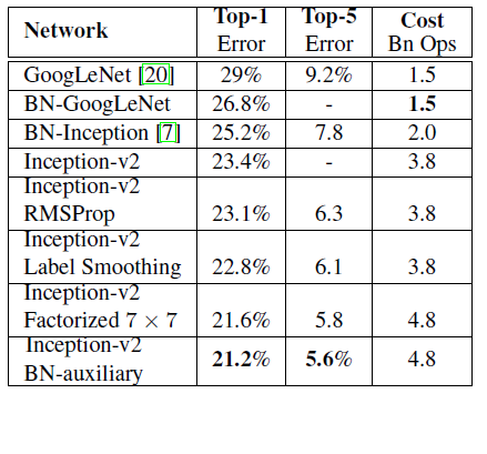 经实验,模型结果与旧的GoogleNet相比有较大提升,如下表所示: