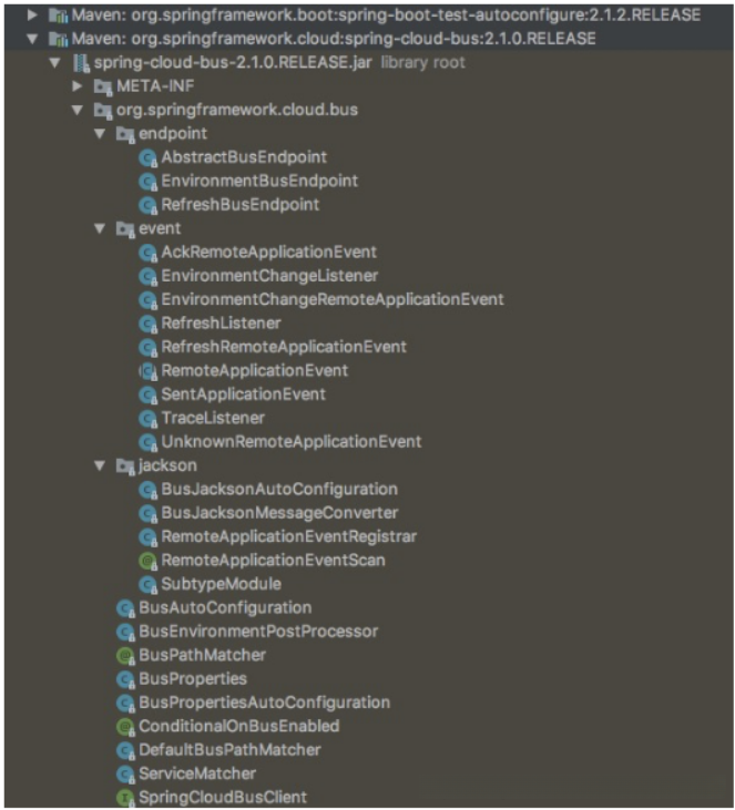Bus 的例子比较简单,因为 Bus 的 AutoConfiguration 层都有了默认的配置,只需要引入消息中间件对应的 Spring Cloud Stream 以及 Spring Cloud Bus 依赖即可,之后所有启动的应用都会使用同一个 Topic 进行消息的接收和发送。