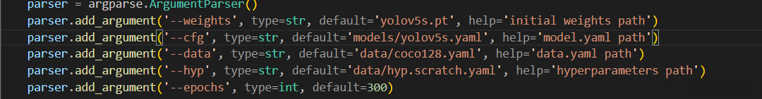 然后再去训练模型,修改train.py中的超参数为下面的样子