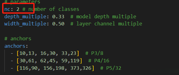 将models中yolov5s.yaml也复制一份,命名为yolov5_cowdetect.yaml,然后将里面的nc修改成2,就是咱们的实际种类数。