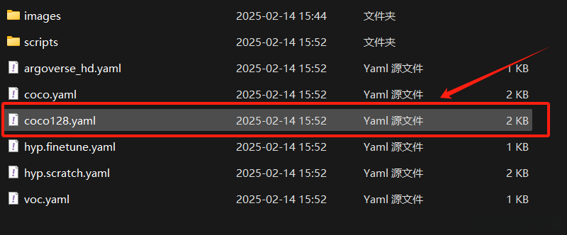我们今天只讲coco128.yaml这个数据集配置文件(这个数据集的配置方式比较简单,适合小白理解,不可操之过急,当然大家如果有对其他数据集配置方式有疑问的欢迎在评论区下留言),我们打开coco128.yaml这个配置文件。