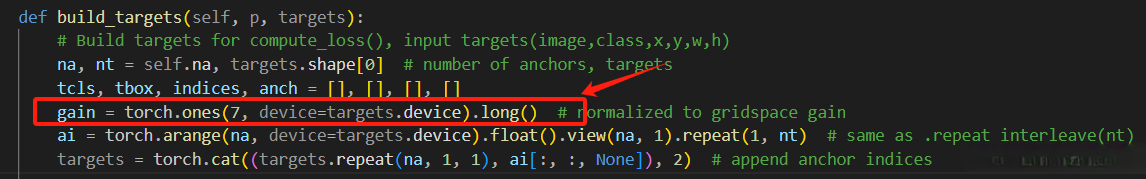 打开yolov5项目目录中的utils文件夹下的loss.py文件,找到163行下的def build_targets(self, p, targets):,将gain = torch.ones(7, device=targets.device)改为gain = torch.ones(7, device=targets.device).long(),也就是在末尾添加.long(),保存即可
