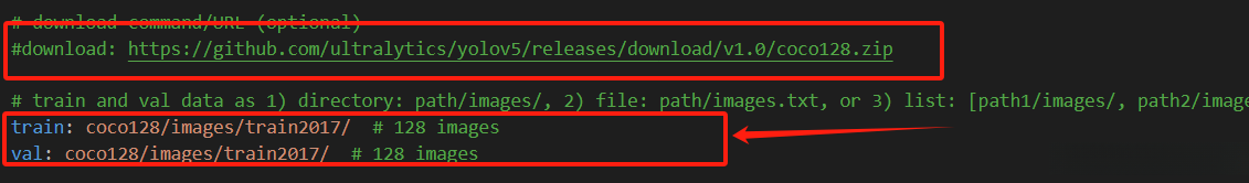 把上面的download给注释掉,因为我们已经自己下载好了,不然之后训练模型的时候,终端里会自动再下载一遍,把后面的路径也修改一下,修改成图片上的形式,不然会检测到路径报错。
