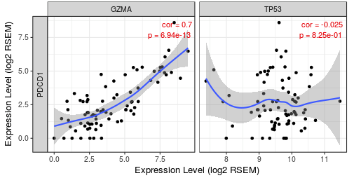 分析肿瘤样本中基因表达量的相关性,结果示意如下