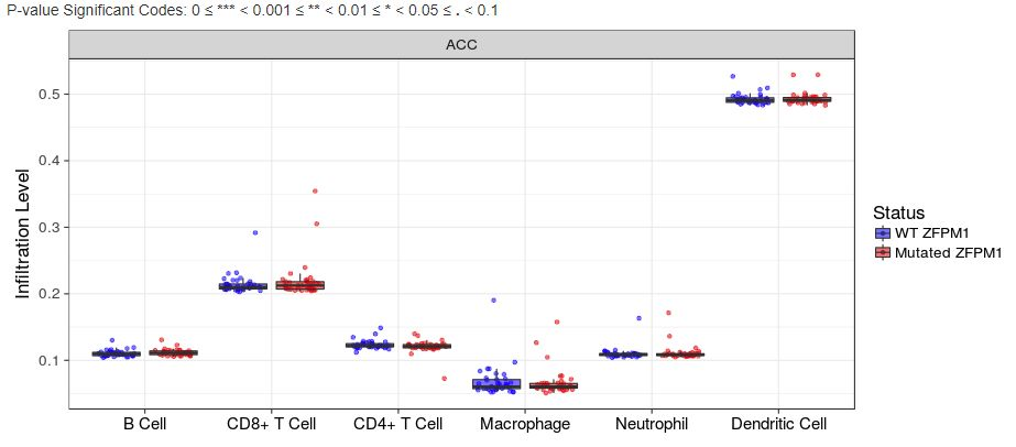 研究肿瘤免疫细胞浸润与其体细胞基因突变之间的关联性;通过检测包含该基因是否存在突变更细地将肿瘤样本划分为野生型及突变型;分析两种类型样本中浸润区域所含有的免疫细胞分布特征;结果示意如下