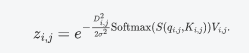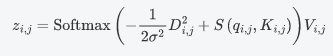 将该特征点与所有的K和V的欧式距离定义为D_{i, j}