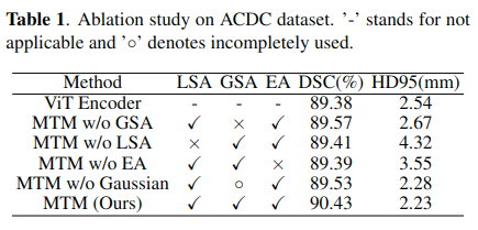 | 论文方法 | 提出了一种新的混合Transformer模块(MTM),用于同时进行inter-affinities学习和intra-affinities学习。MTM首先通过局部-全局高斯加权自注意(LGG-SA)有效地计算窗口内部affinities。然后,通过外部注意挖掘数据样本之间的联系。利用MTM算法,构造了一种用于医学图像分割的MT-UNet模型 |