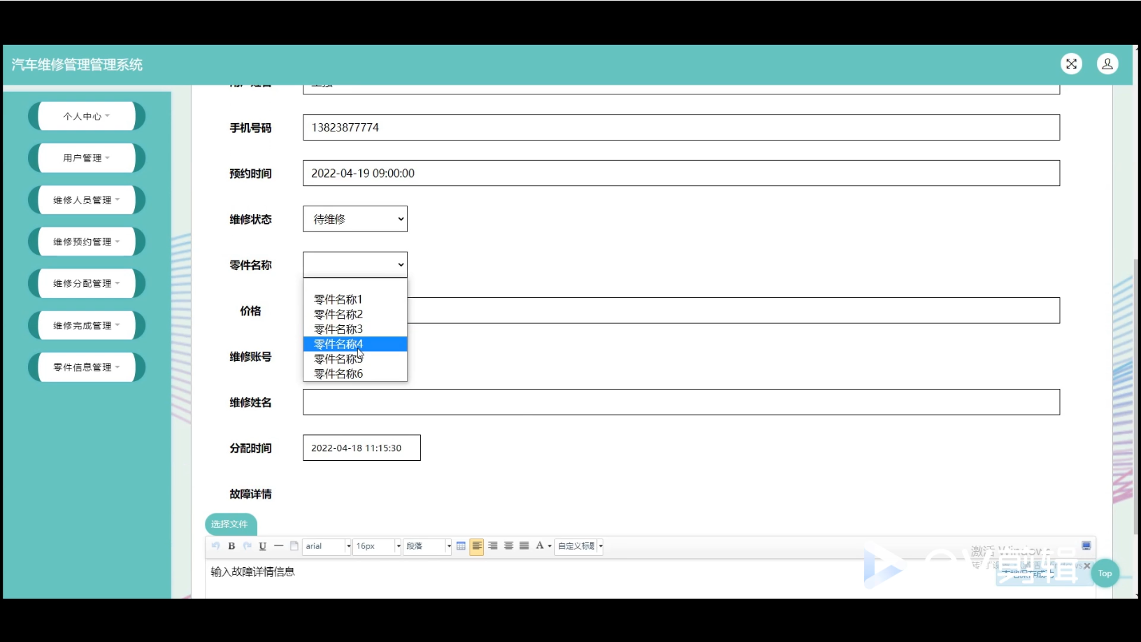 - 维修工单管理模块:提供维修工单的创建、审核、执行和结算等功能,实现维修流程的全面管理。