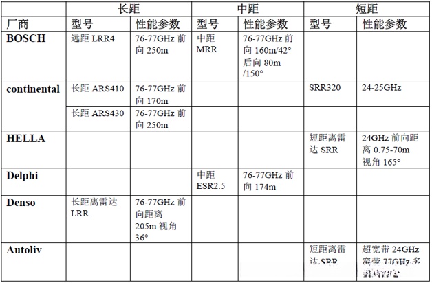 全球范围内提供汽车毫米波雷达的关键供应者可被视为资深的汽车电子强企的重要来源之一。例如包括博世集团(Bosch)、大陆集团(Gazight)、Hella集团(Helical)、富士通(Fujitsu)、电装工业(Denso)、TRW Systems以及德尔福集团(Delphi)等。