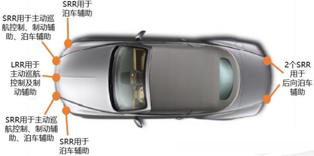 以自适应续航控制(ACC)为例,则通常配备 3 个毫米波雷达。