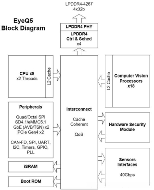 Mobileye is a provider of unmanned vehicle solutions utilizing ASIC technology. The Eyeq5 SOC is equipped with four distinct fully programmable accelerators specifically optimized for specialized algorithms, including computer vision, signal processing, and machine learning among others. The Eyeq5 SOC features two dedicated PCI-E ports to facilitate communication between multiple processors. This architecture aims to allocate the most suitable computational resources to each computing task, ensuring efficient resource utilization and enhanced computational performance.