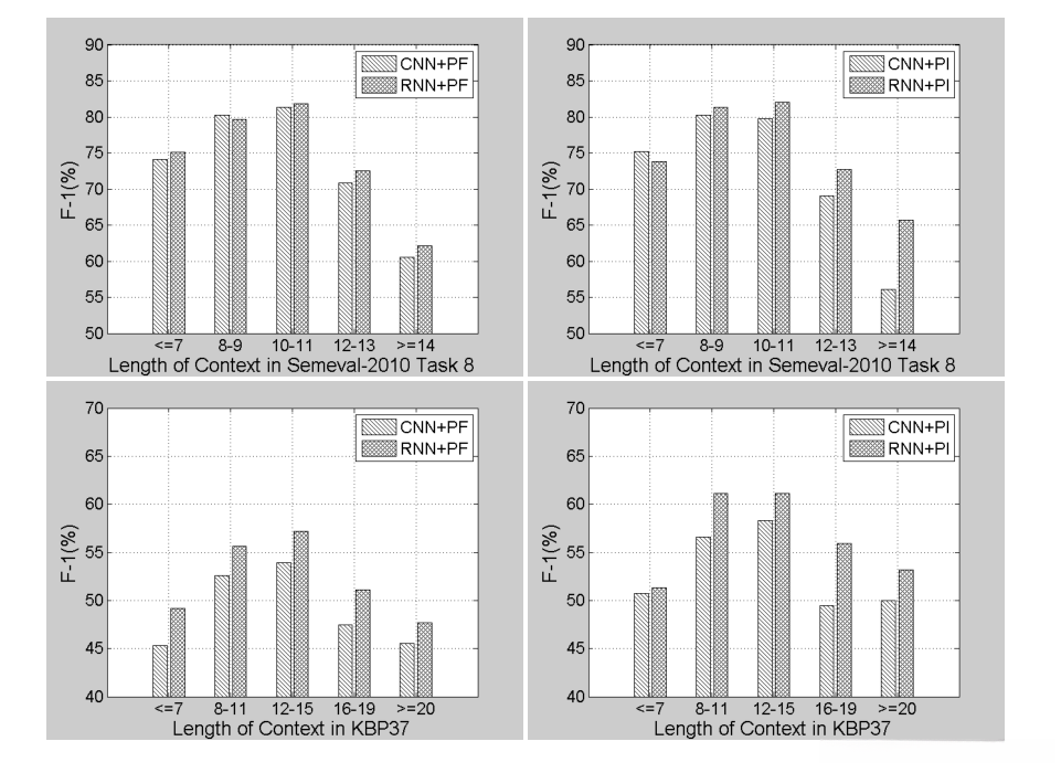 结果表明,context长度较大时,RNN模型性能明显优于CNN。
