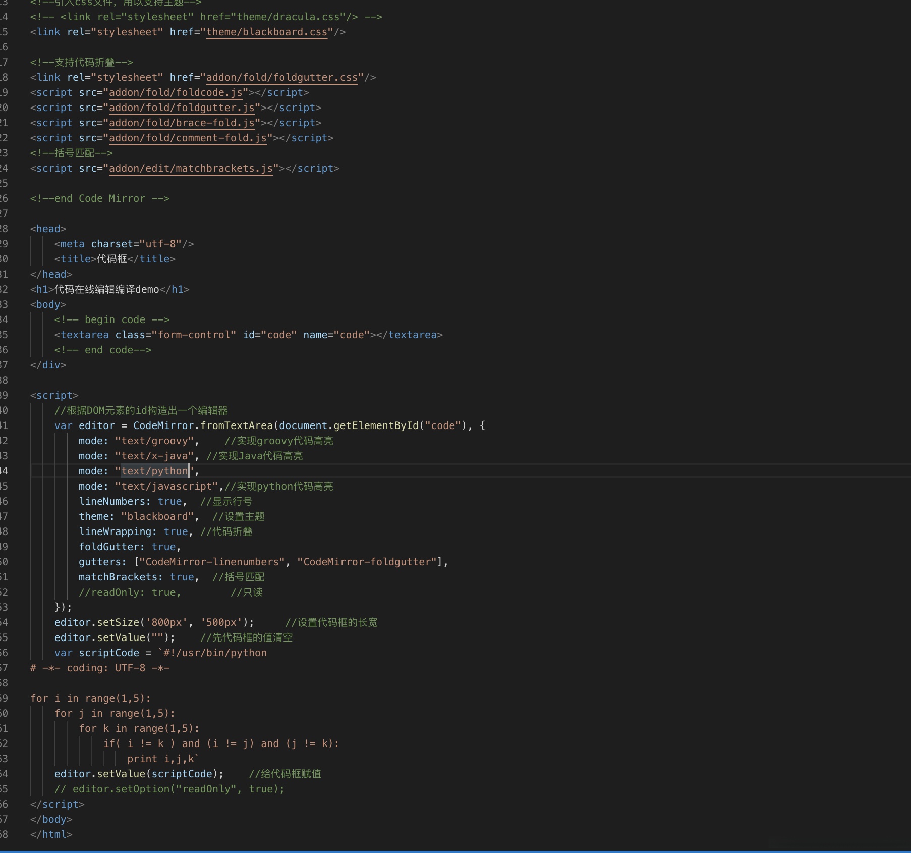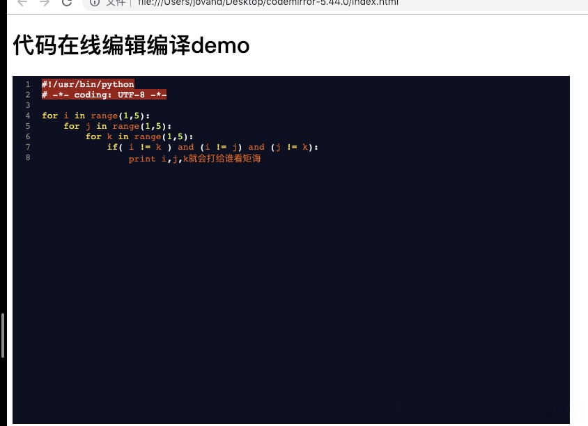 mode: "text/javascript",//实现python代码高亮