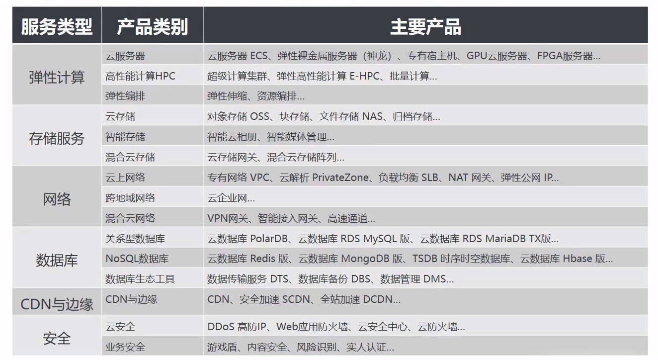 阿里云弹性结算类产品为用户提供计算相关的服务,最常用的弹性计算类产品有