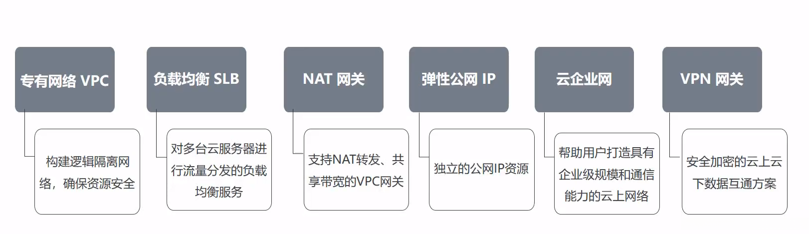 阿里云网络类产品:主要为用户提供阿里云内 资源互通以及云内资源和公网连接