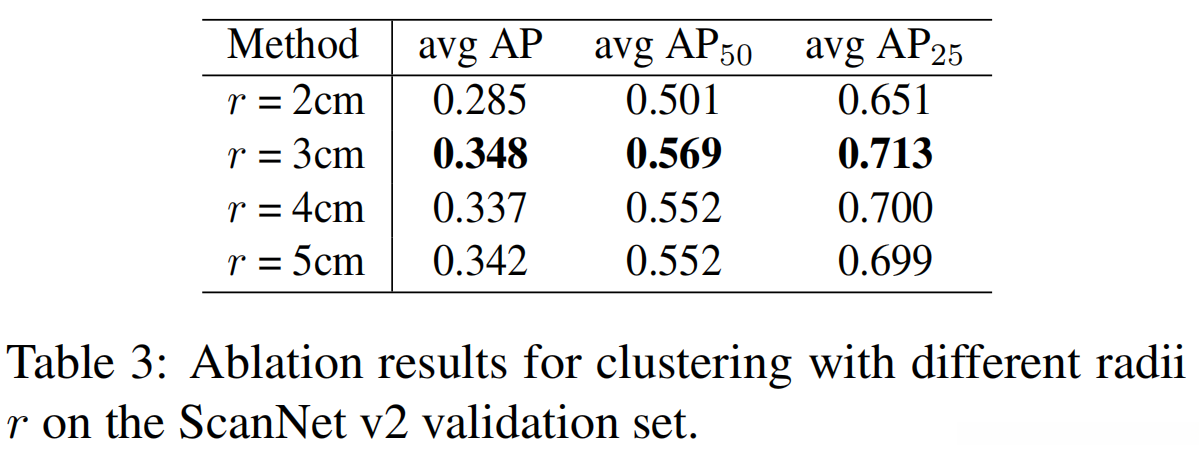 Ablation on the Clustering Radius r