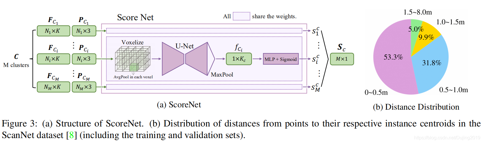 - 3b给出了ScanNet数据集中此类距离分布的统计分析。