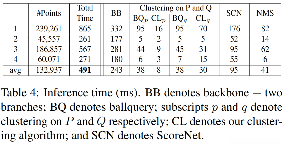 - 从 ScanNet v2 验证集中随机选取了四个典型场景,并在 Titan Xp GPU 上对该数据集进行了 100 次重复测试。