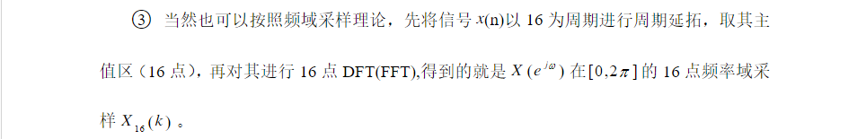 频域采样定理的图验证了频域采样理论和频域采样定理。对信号 x(n) 的频谱函数 X(ejω) 在 [0,2π] 上等间隔采样 N=16 时, N点IDFT[XNk]得到的序列正是原序列 x(n) 以 16 为周期进行周期延拓后的主值区序列,频域采样点数 N 必须大于等于时域离散信号的长度 M (即N≥M),才能使时域不产生混叠。