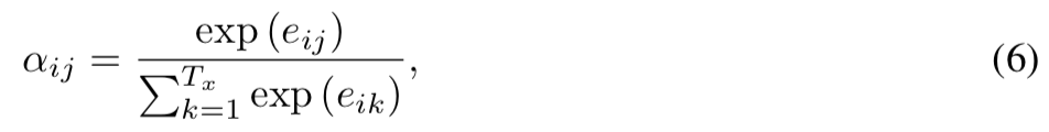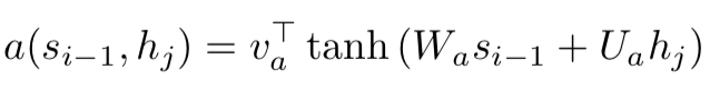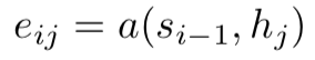 是一个对齐模型,它可以评估位置j周围的输入和位置i的输出匹配程度。 得分基于RNN隐藏状态s_{i-1}(就在发射y_i之前,等式(4))和输入语句的第j个注释h_j。