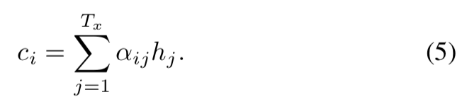 然后,将上下文向量c_i计算为这些注释的加权和h_i: