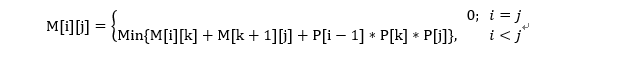 m^{(ij)}=\min_{k=i}^{j-1} \{ m^{(ik)} + m^{(k+1,j)} + p_{(i-1)}p_kp_j \}