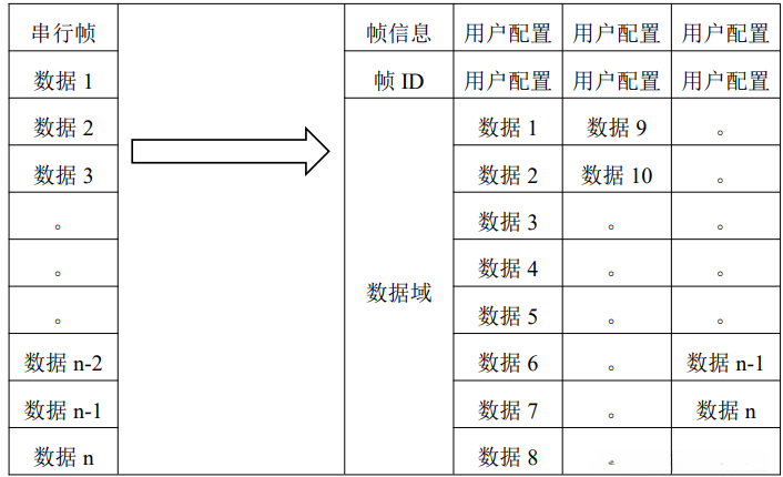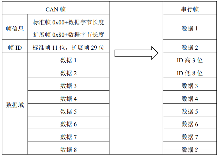 232 接口接收一帧串行数据后会依据上述配置取出其ID并据此作为CAN发送该ID随后发送这一帧串行数据
