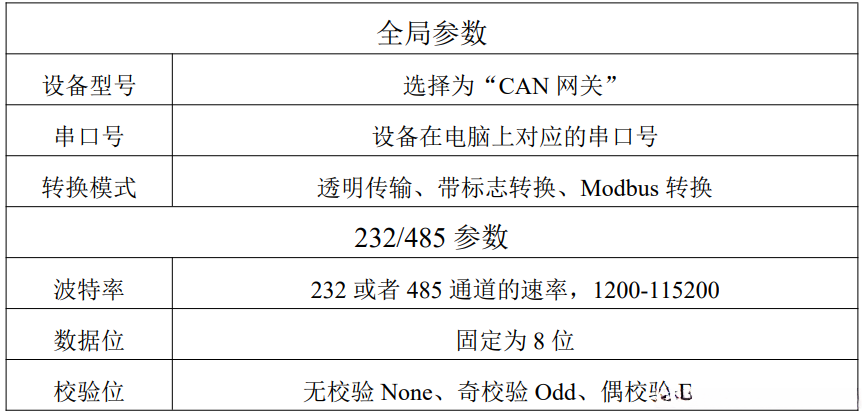 在配置过程中将SET端与MODE端短接,在此之后使用USB转串口线将电脑与设备的232接口相连后重新开机。接着启动配置软件,在界面中设置设备型号为CAN网关,并依次选择相应的串口号,并开启后完成参数设置