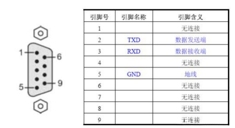 RS-232 接口使用 DB9 母头接口,接口定义如下