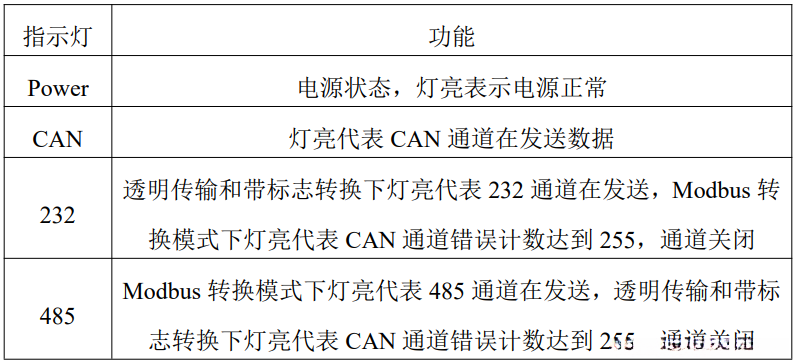 在Modbus转换模式下,系统会将485通道接收的每帧数据中的首字节(即地址)转译为CAN发送ID.同时,CAN总线接收的CAN帧ID的最低8位(相当于一个字节)被相应地转译为Modbus应答帧的第一个字节(地址)。