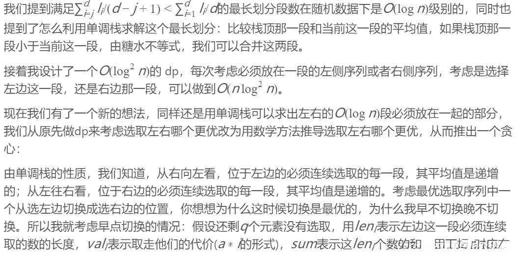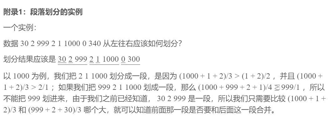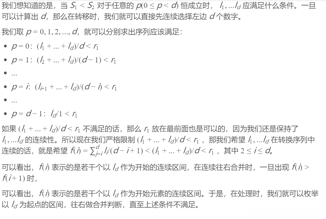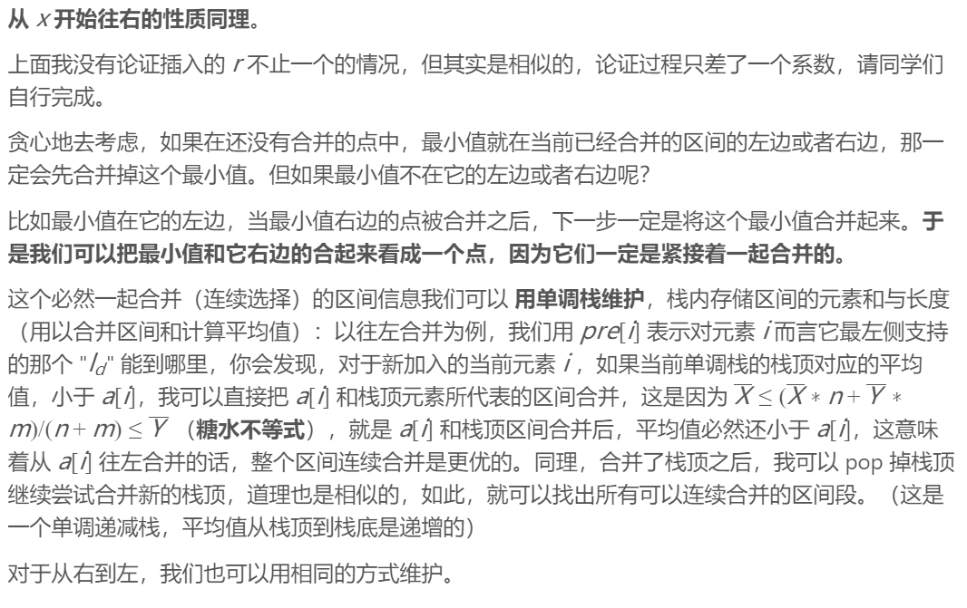 // 当前区间 stk[top] 的平均值小于右侧区间 now,说明从 now 往左合并平均值会更小,就合并