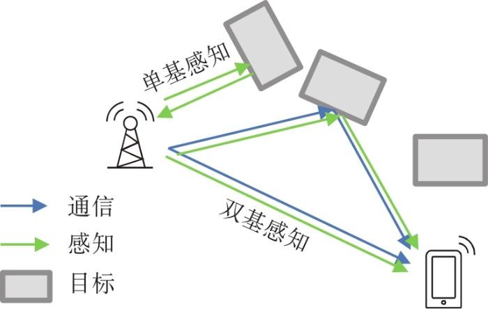 在通信感知一体化系统框架内,包含单基感知与双基感知两大类基础形态,其中图3展示了这些基本形态的分布情况