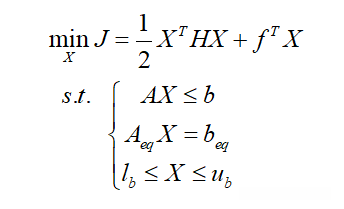 2.Matlab中二次规划quadprog的标准形式为: