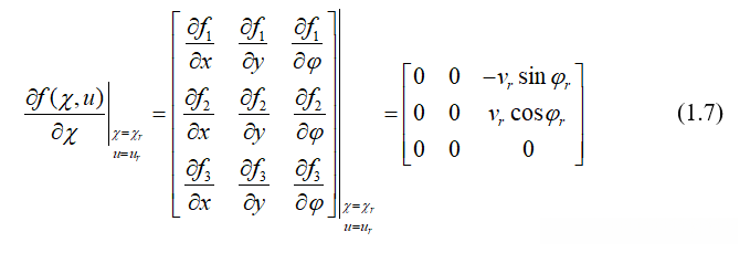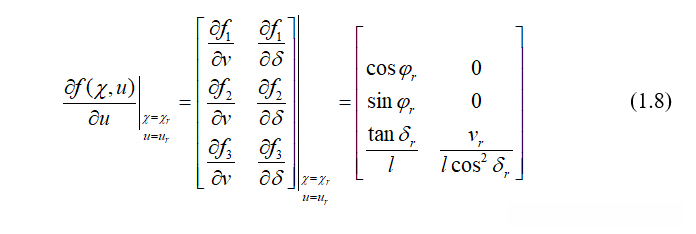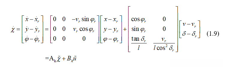 在参考轨迹点采用泰勒级数展开并忽略高阶项,只保留一阶项:
