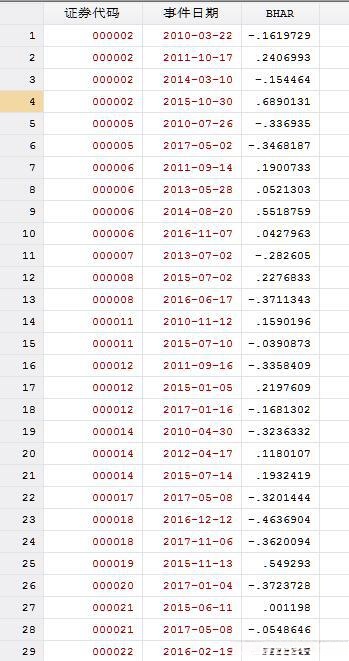该代码采用日数据作为基础;计算从事件日期开始至250个交易日(不含停牌期间)的BH值;具体时间段可根据个人需求进行调整;也可选择按月度进行计算;其核心逻辑保持不变