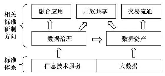 数据资产标准化的研究主要源于信息技术(information technology,IT)服务和大数据2个标准体系。信息技术服务标准工作组在IT服务管理、IT治理等基础上开展了数据治理相关标准研究,大数据标准工作组在大数据参考架构、大数据技术、产品等标准的基础上推进了数据交易流通、数据开放共享标准的制定。近年来信息技术服务和大数据2个标准体系在数据治理与数据资产方向的标准化研究逐渐融合。