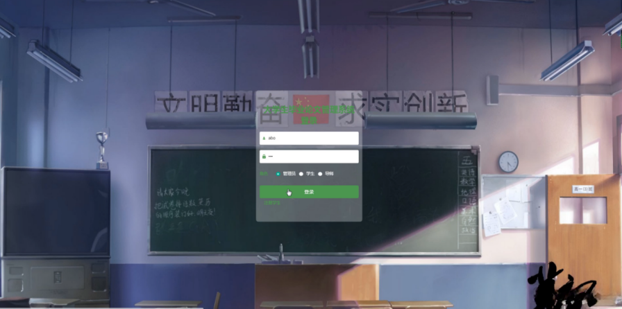 管理员登录,通过填写注册时输入的用户名、密码、角色进行登录,如图5-1所示。