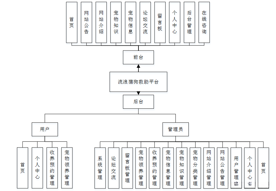流浪猫狗救助平台的主要功能的结构如图4-1所示。