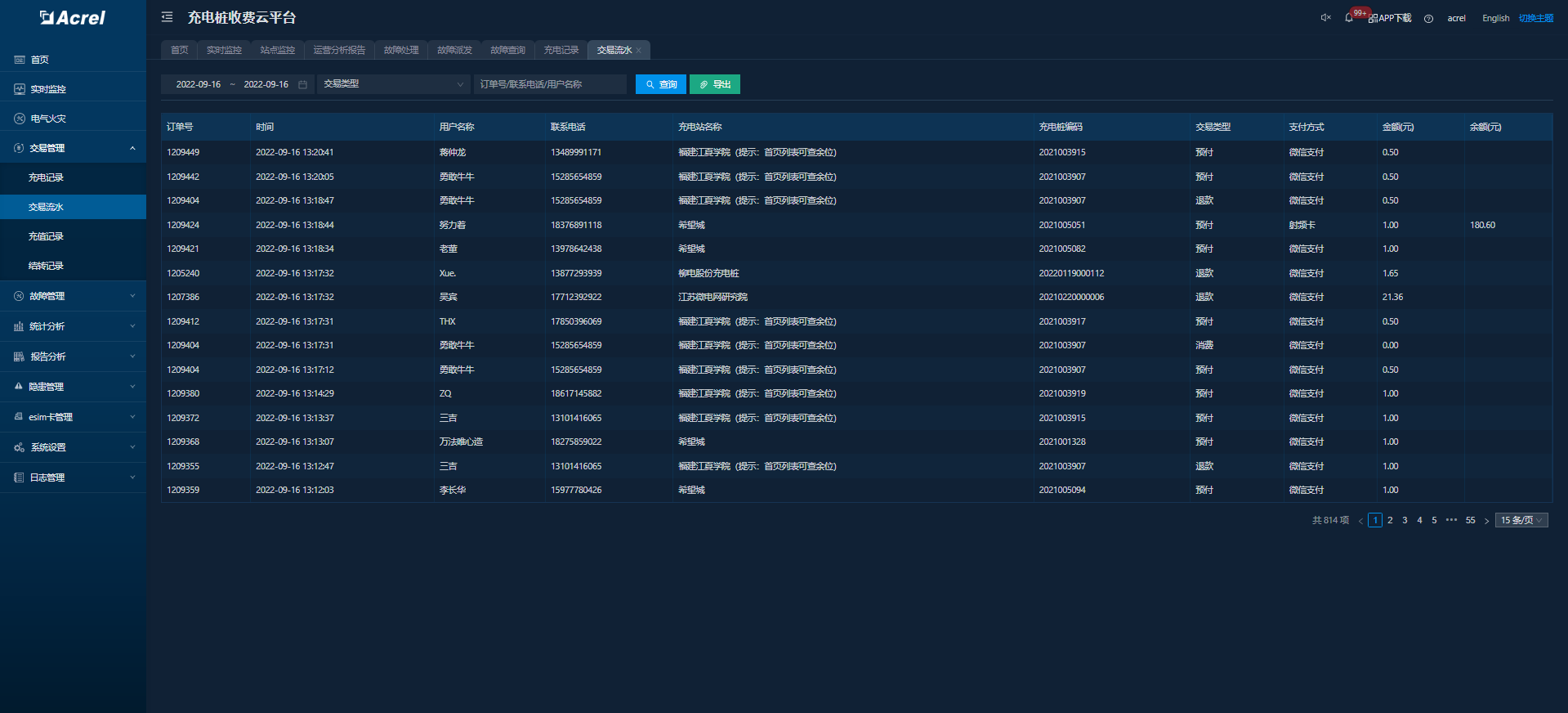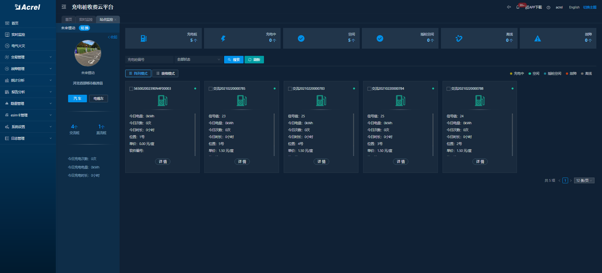 AcrelCloud-9000安科瑞充电桩收费运营云平台系统通过物联网技术与接入系统的汽车充电站、电动自行车充电站以及各个充电桩实现持续不断地数据采集与监控。系统持续关注充电桩运行状态,并提供充电服务的同时完成支付管理流程及交易结算工作。此外系统还具备资源管理功能电能管理功能以及详细的电费明细查询功能。对于充电桩运行过程中可能出现的过温保护漏电情况以及输入输出端的过压欠压或绝缘下降等问题系统能够及时发出故障预警信息并对相关问题进行初步判断。该平台支持以太网4G或WIFI等多种接入方式满足用户的在线支付需求方便用户通过微信支付宝或云闪付等移动支付工具实现便捷的扫码支付功能