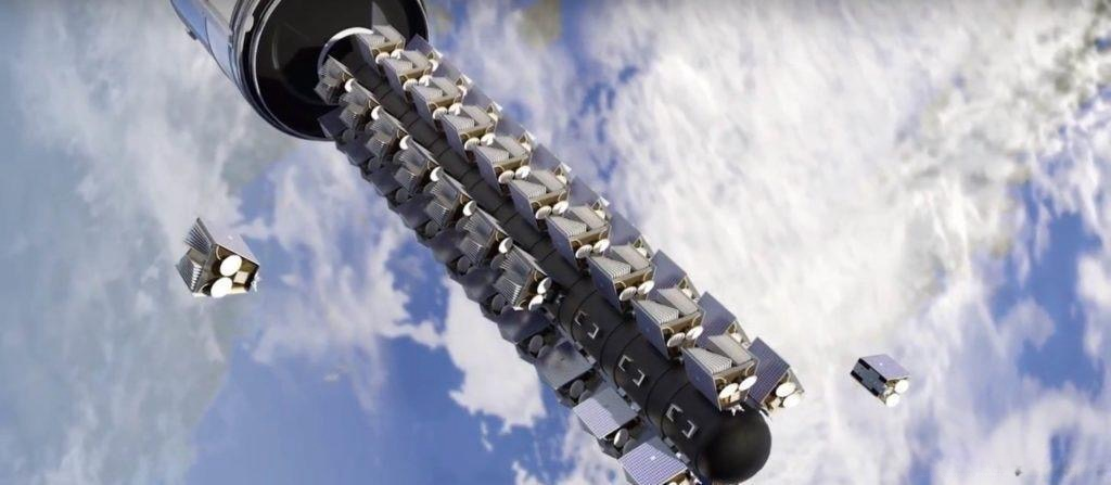 mutex prior, the rocket supplies angular velocity in the roll and pitch directions to the interplanetary constellation. unlock posteriorly, each satellite separates under its own angular velocity and tangential speed. once separated, starship departs from orbit as separation mechanism disengages. each satellite independently possesses energy sources for subsequent orbital insertion. separation system comprises starship connection column segment, flip locking mechanism, pressurized release mechanism, strut and cable network etc.